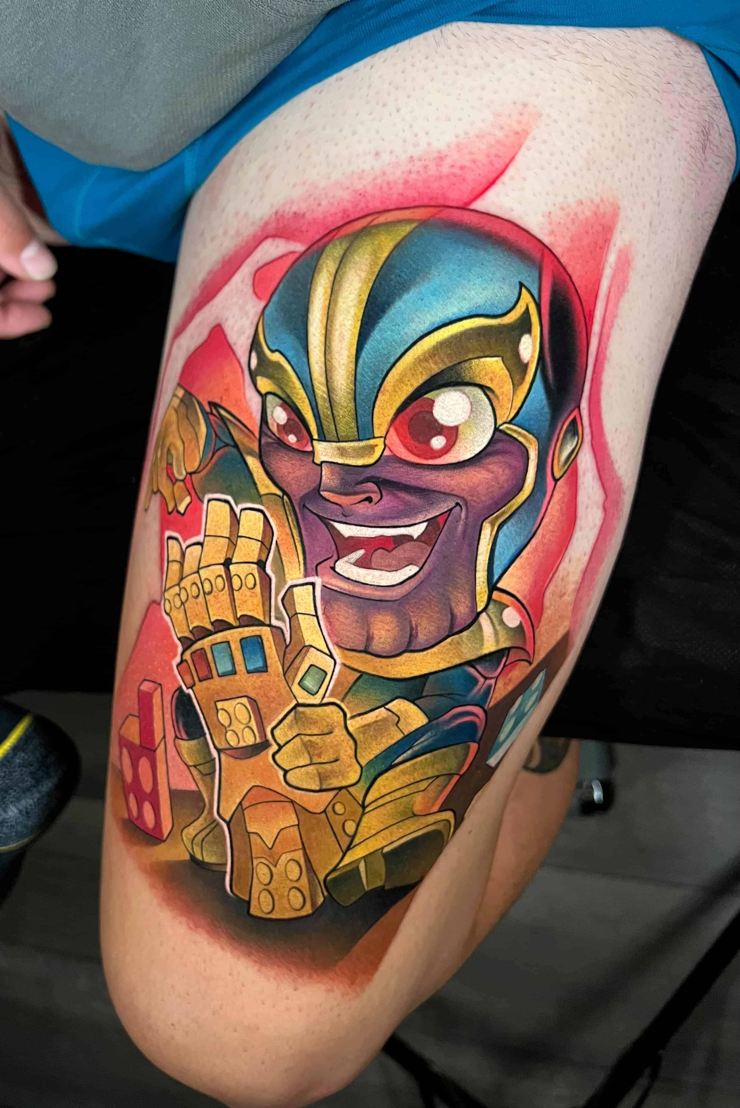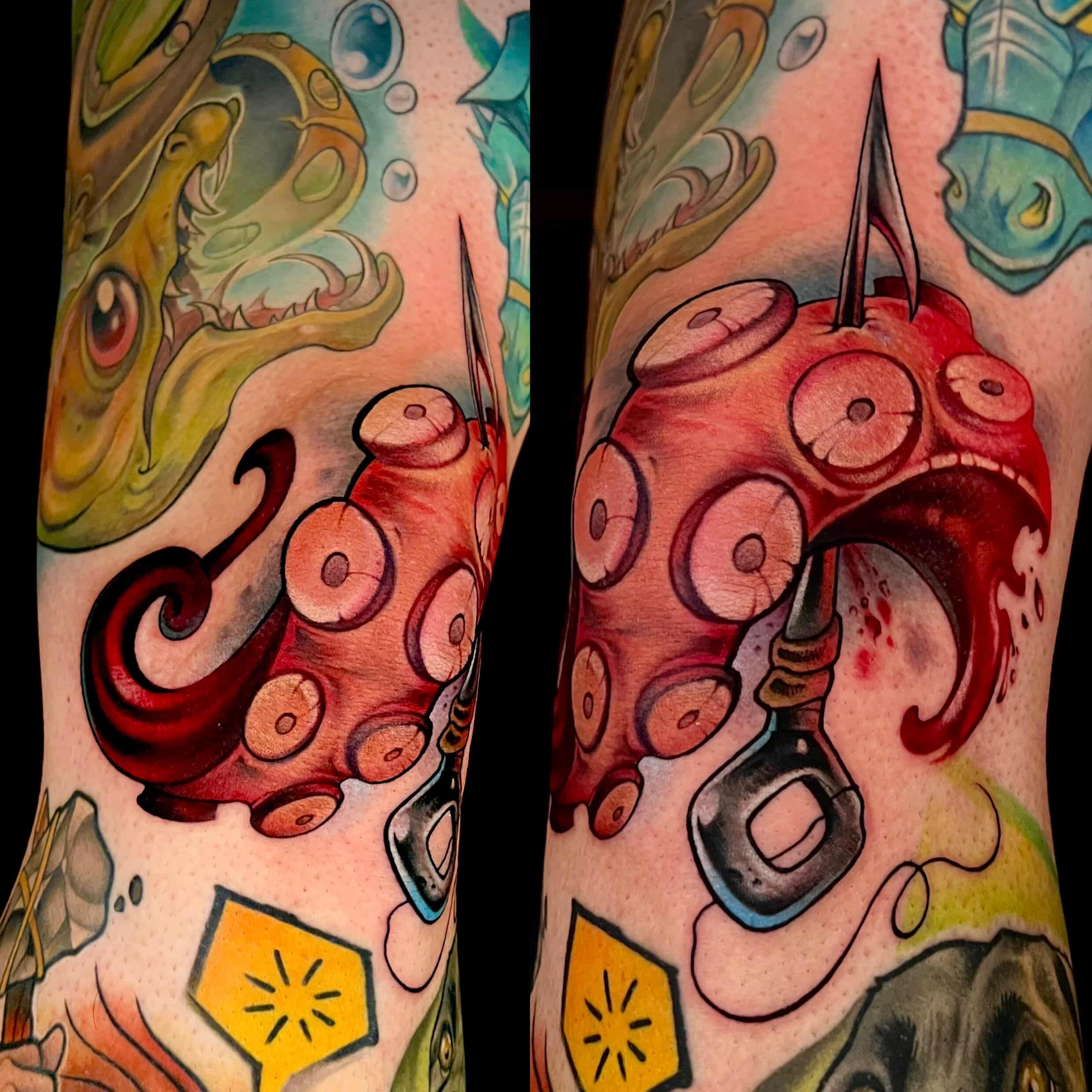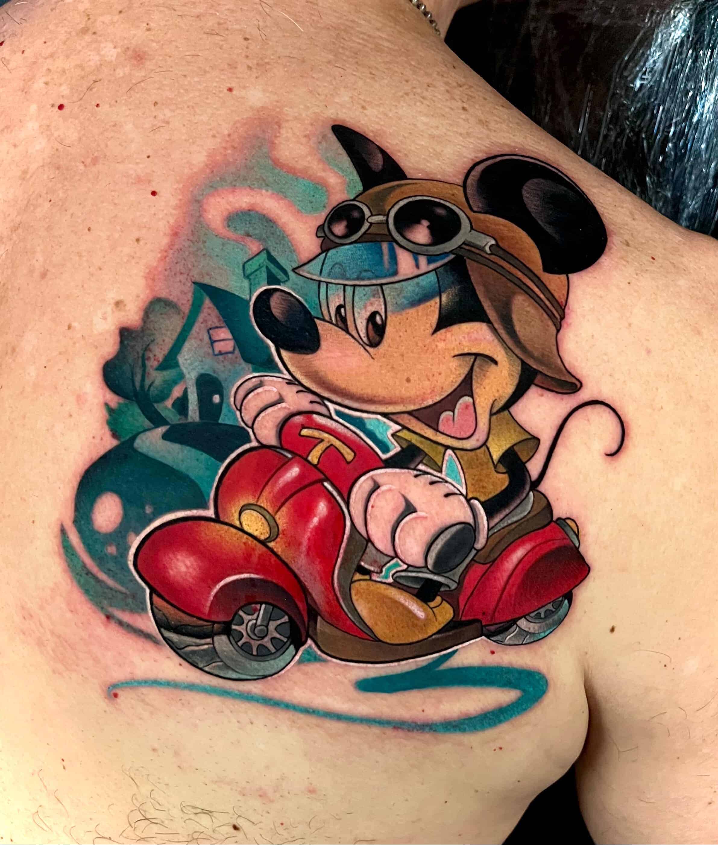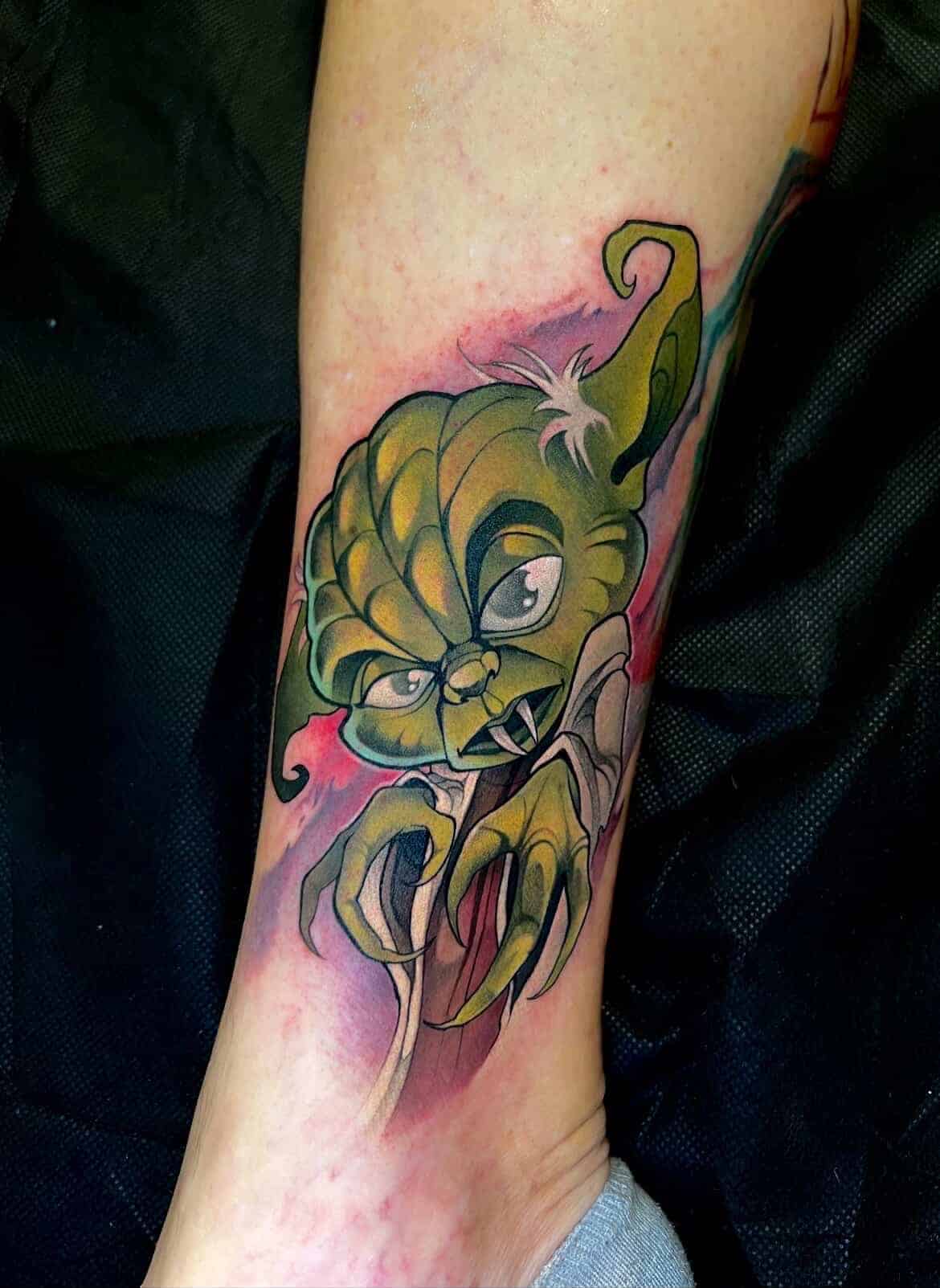 Tattooing professionally since the mid-2010s, he has refined a style defined by saturated palettes, exaggerated forms, clean structure, and strong contrast. His work balances playful distortion with solid fundamentals, resulting in tattoos that feel dynamic while maintaining long-term clarity and durability in the skin.