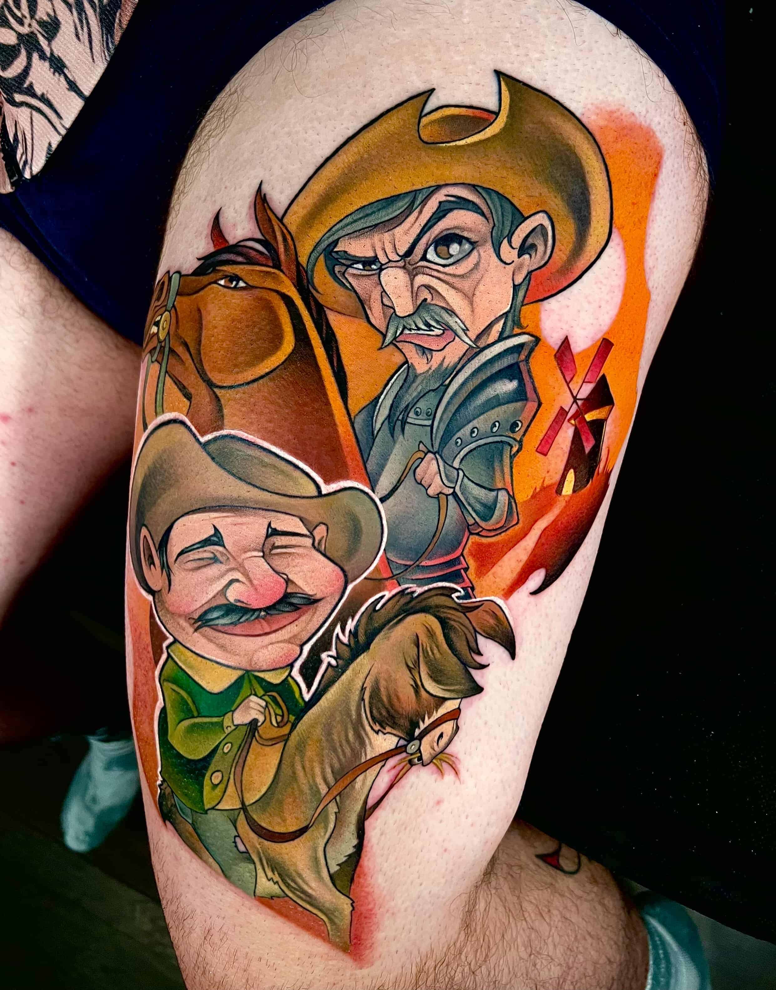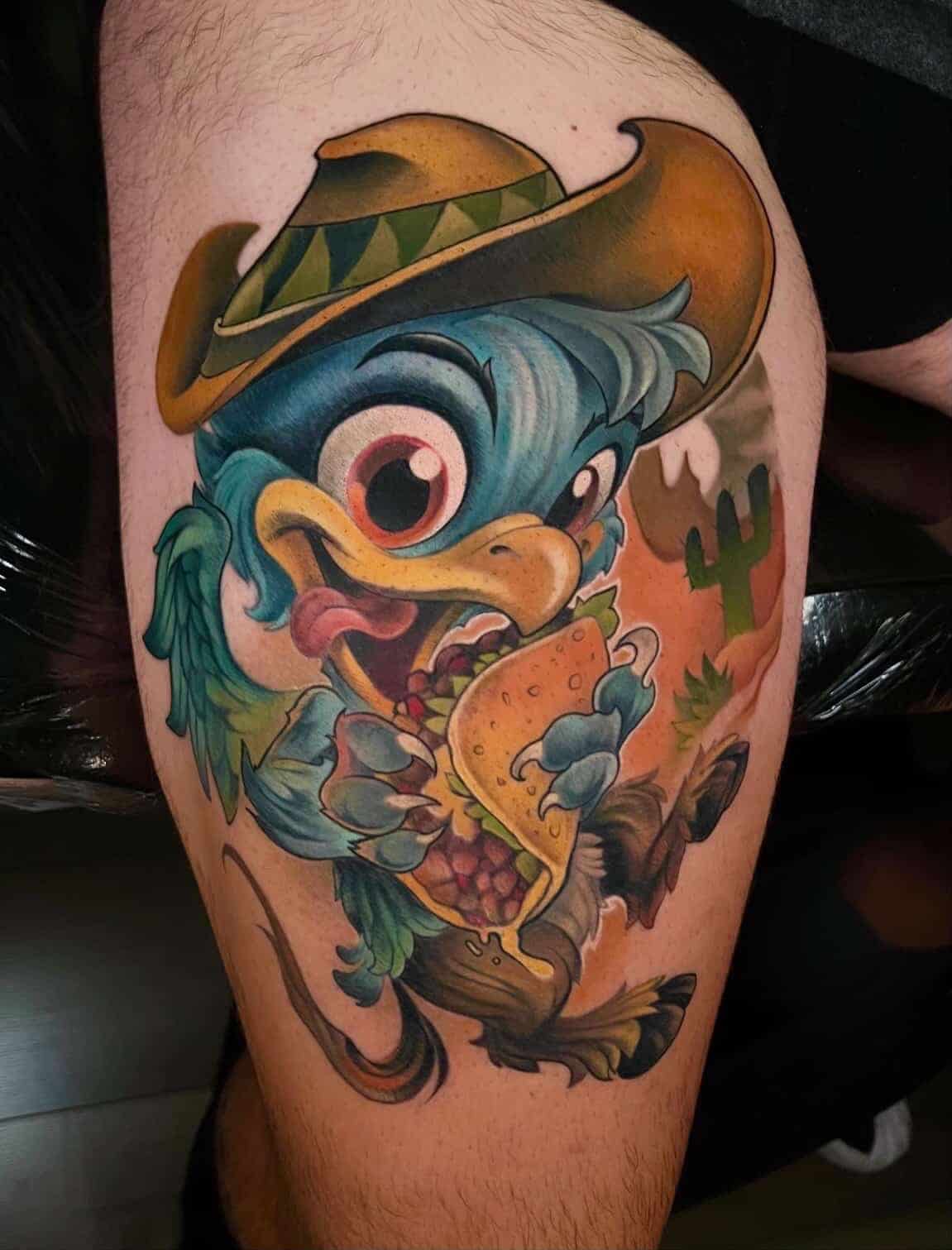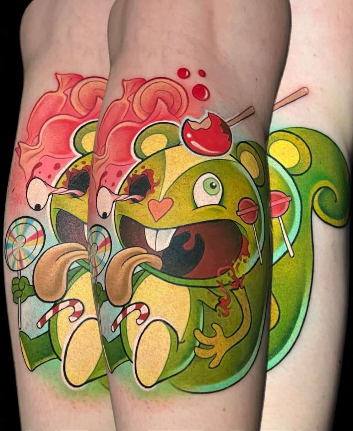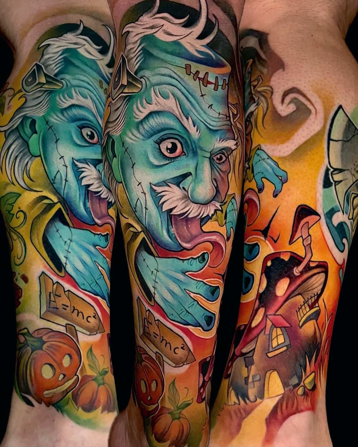 Tattooing professionally since the mid-2010s, he has refined a style defined by saturated palettes, exaggerated forms, clean structure, and strong contrast. His work balances playful distortion with solid fundamentals, resulting in tattoos that feel dynamic while maintaining long-term clarity and durability in the skin.