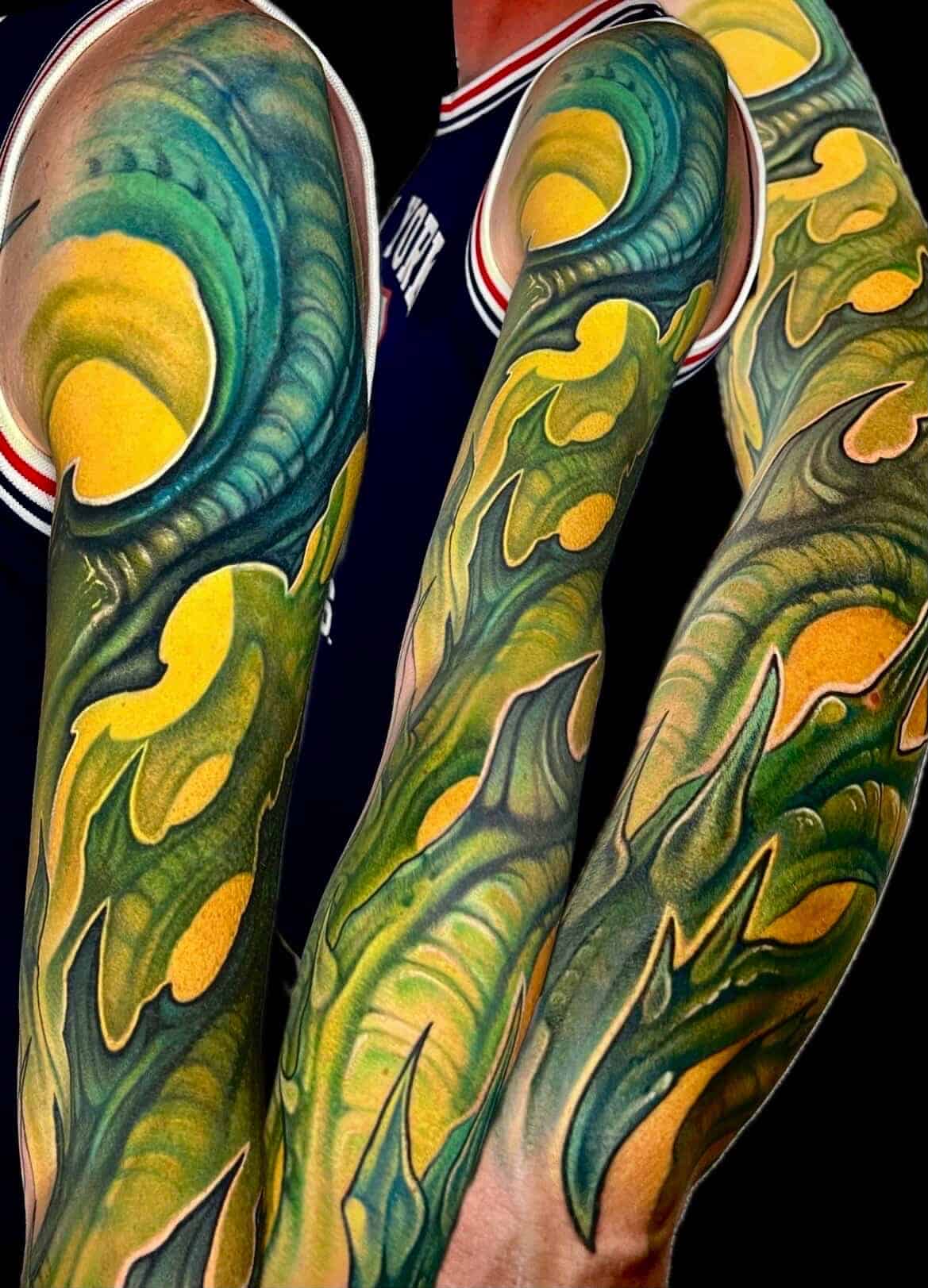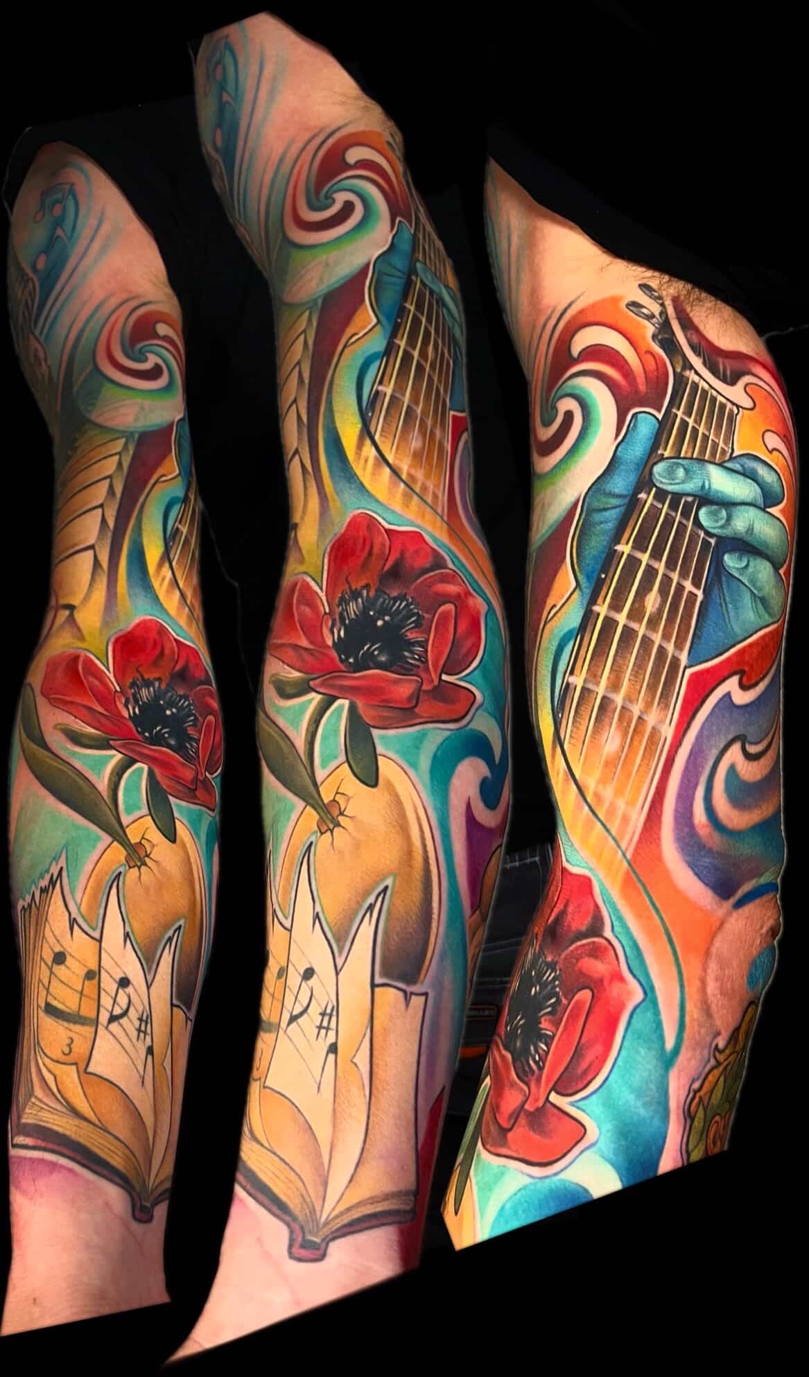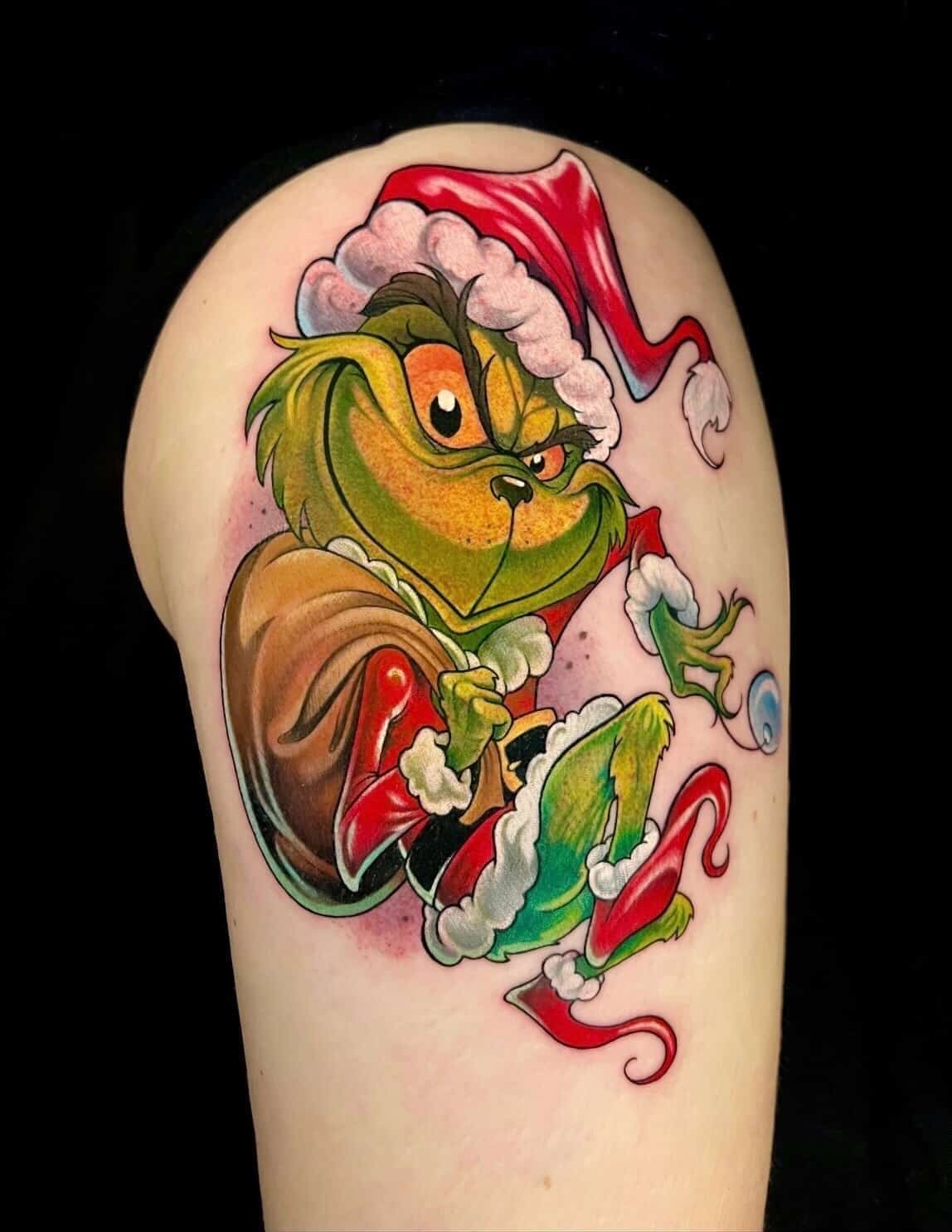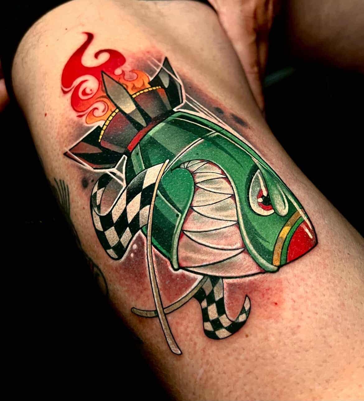 Tattooing professionally since the mid-2010s, he has refined a style defined by saturated palettes, exaggerated forms, clean structure, and strong contrast. His work balances playful distortion with solid fundamentals, resulting in tattoos that feel dynamic while maintaining long-term clarity and durability in the skin.