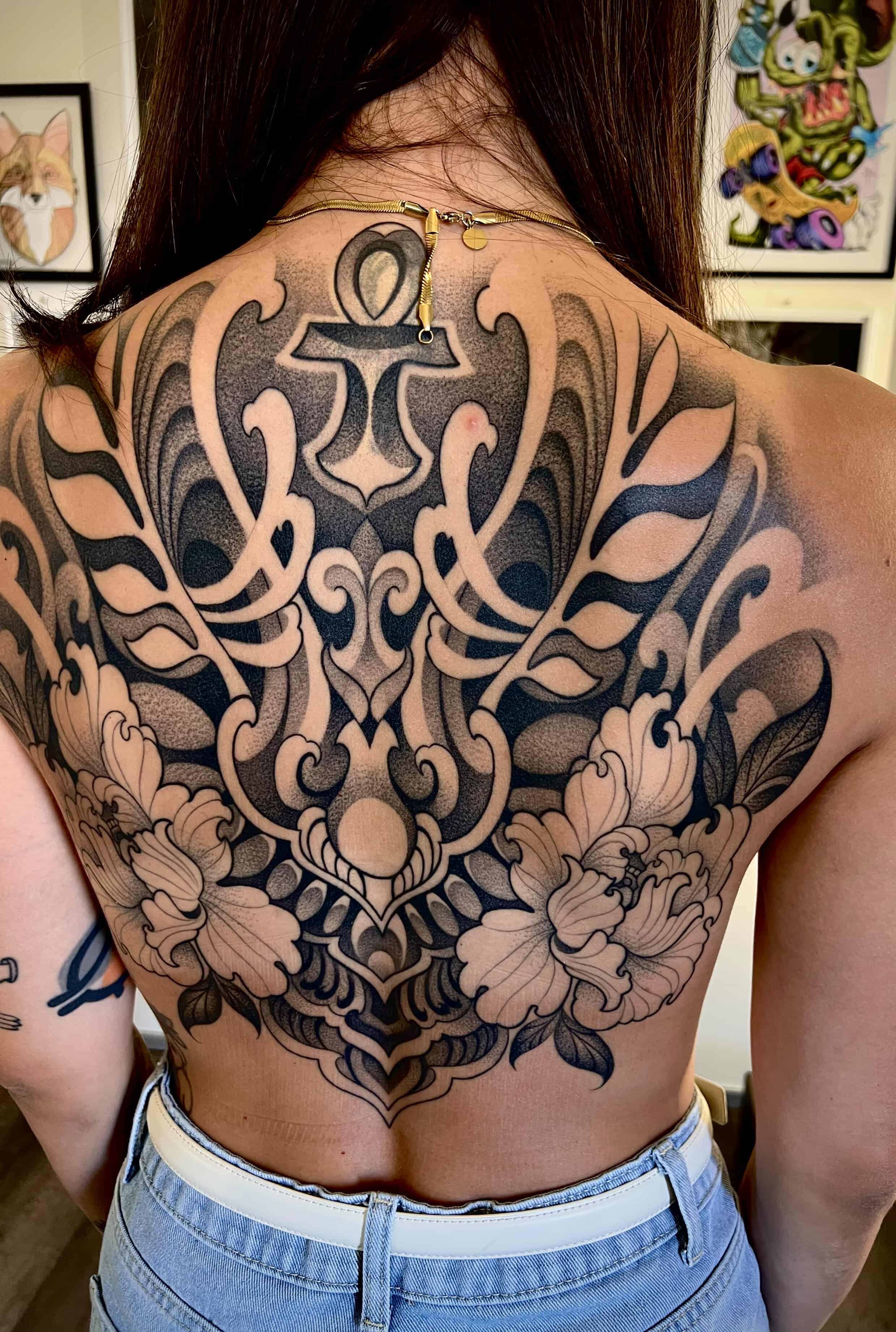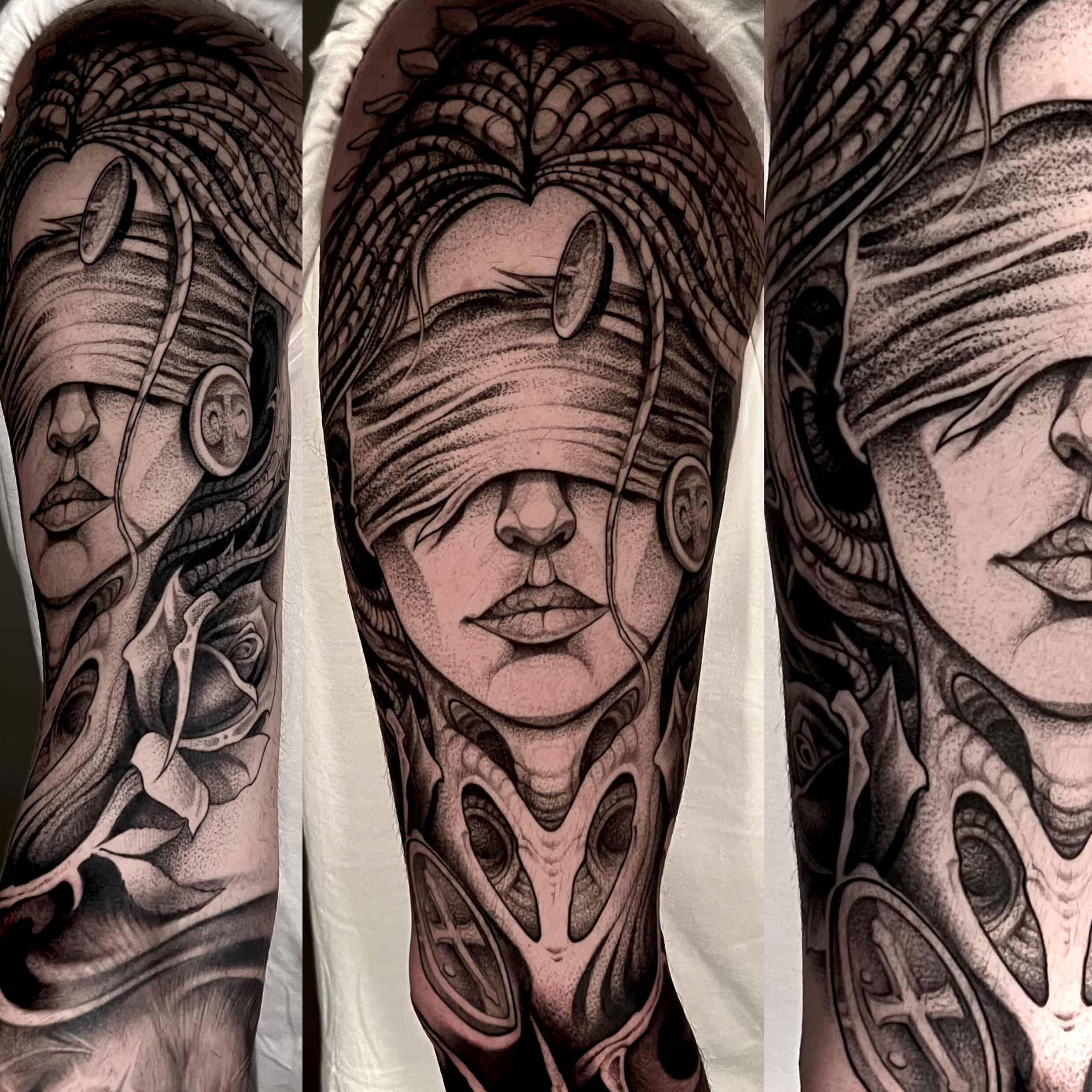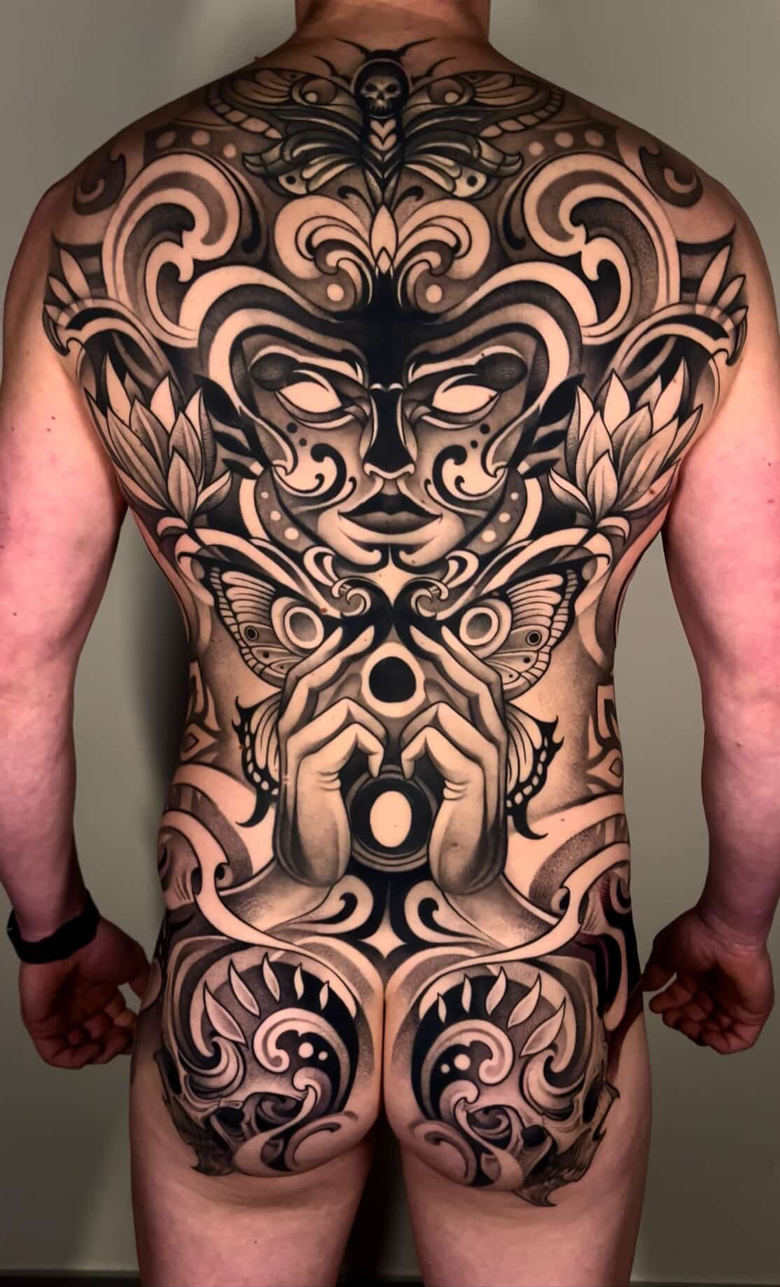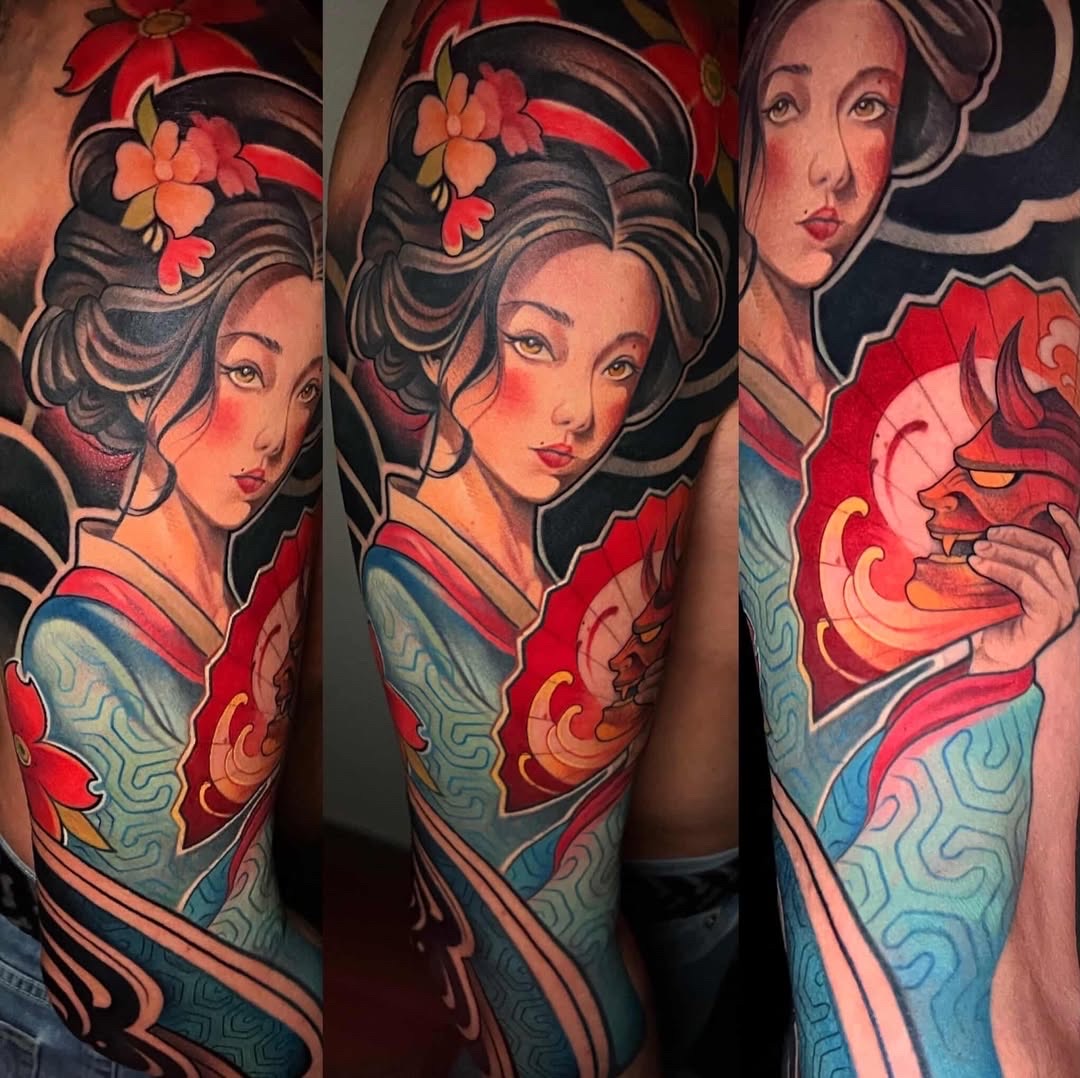 Edo specializes in large-scale projects including sleeves and full panels, approaching each piece as a collaboration. Every design is created custom for the individual, ensuring the final result is visually powerful and personally meaningful.