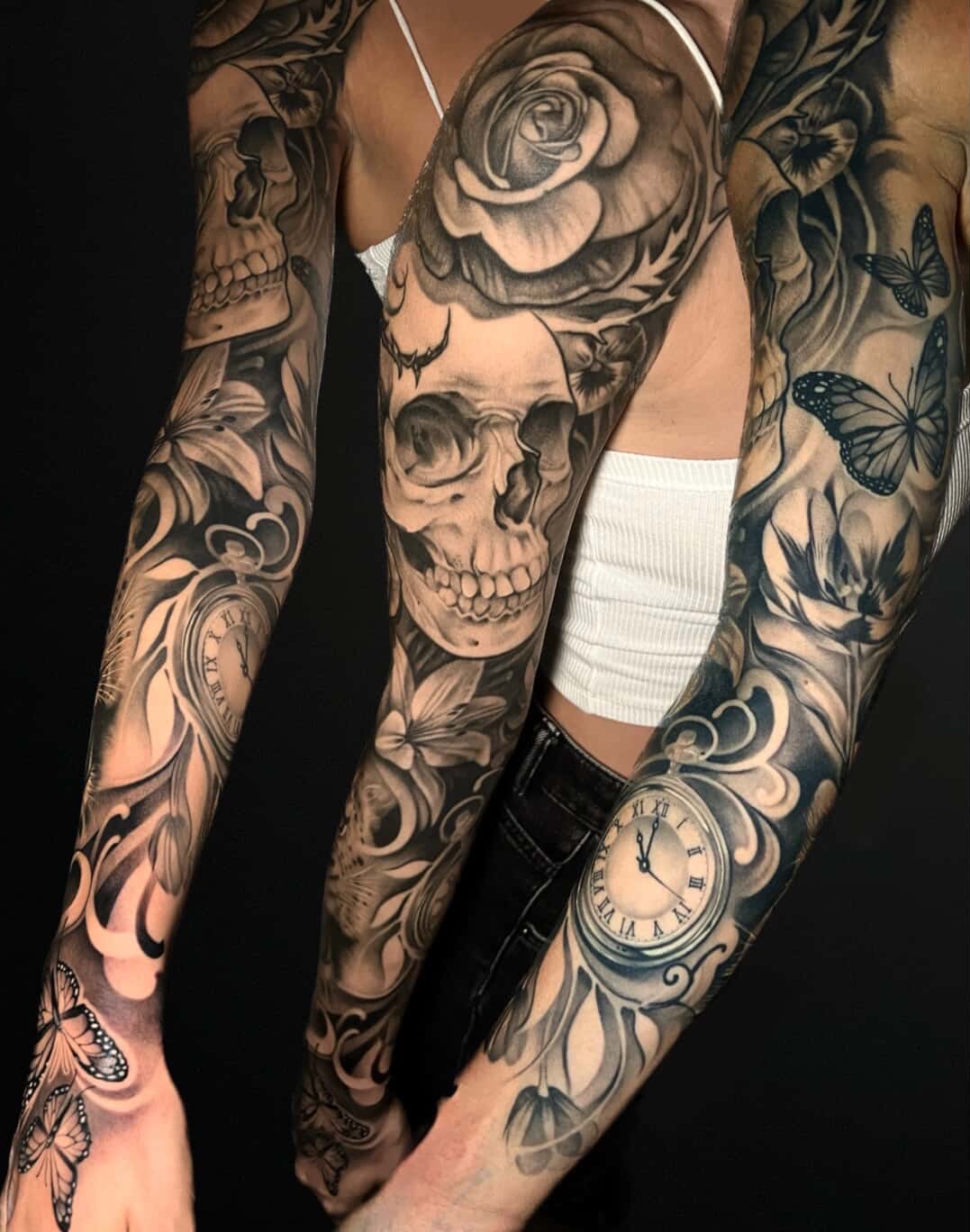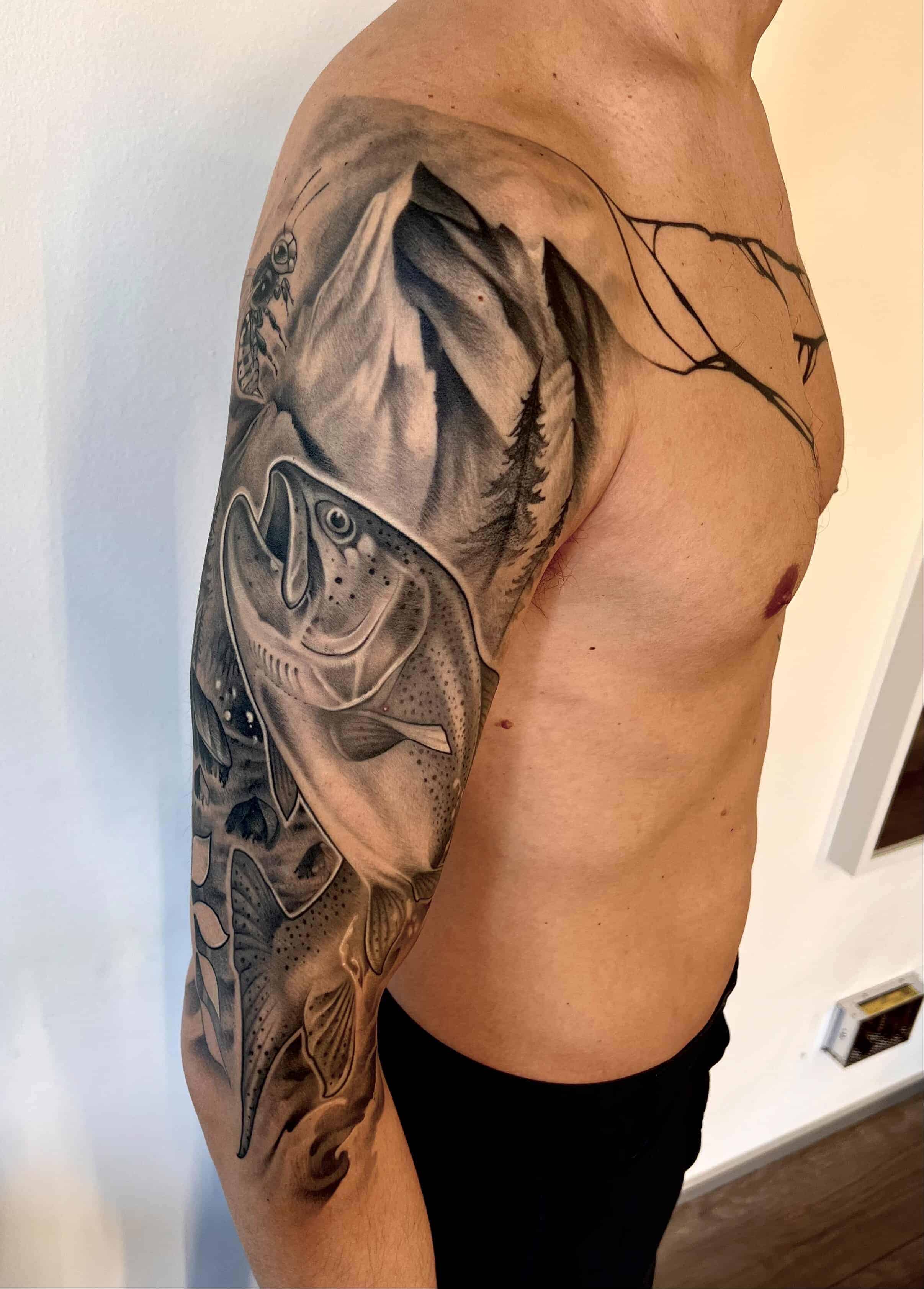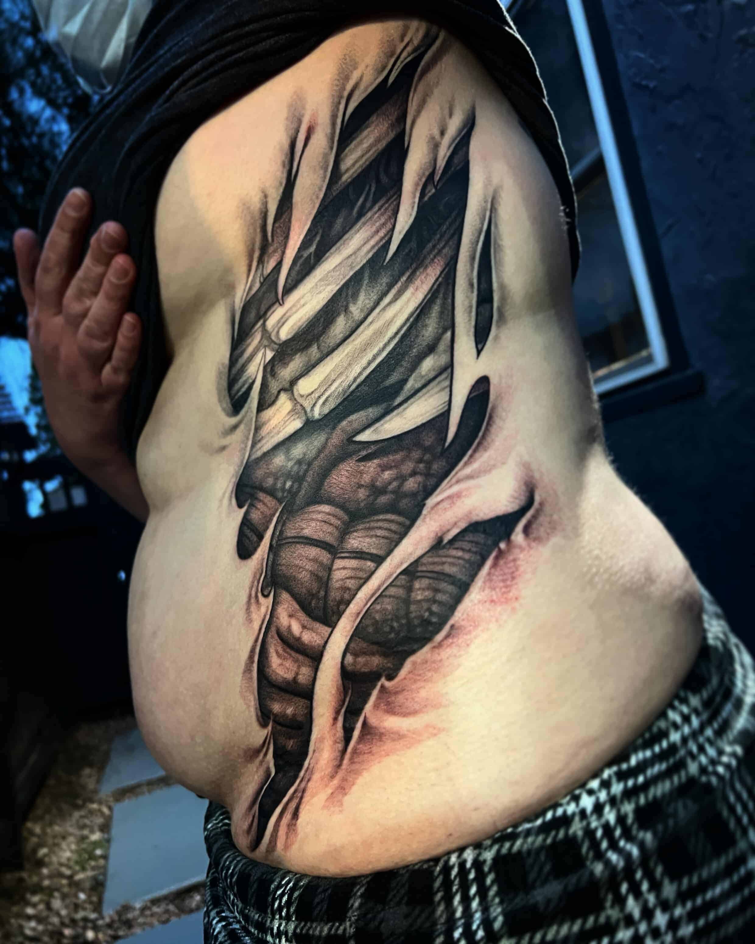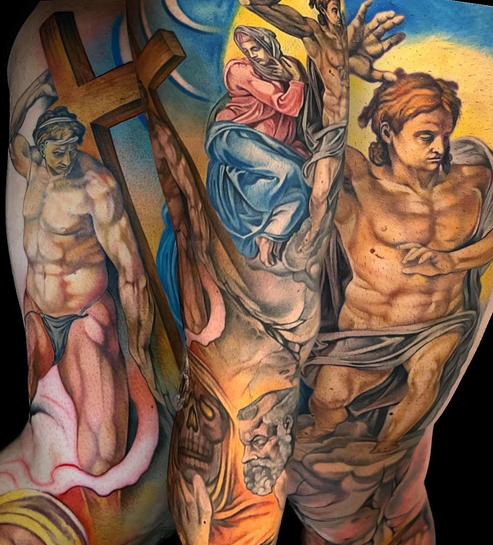 Edo specializes in large-scale projects including sleeves and full panels, approaching each piece as a collaboration. Every design is created custom for the individual, ensuring the final result is visually powerful and personally meaningful.